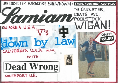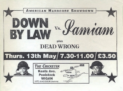 Posters and flyers for an 'American Hardcore Showdown' - 'Down By Law' Vs. 'Samiam' at The Cricketer, Poolstock, Wigan.