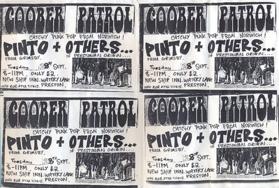 [thumbnail of Promotional flyers for the Goober Patrol, Pinto and Stretch performance at New Ship Inn, 1990s ]