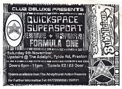 Club Deluxe, Action Records (1996) Quickspace Supersport and Formula One performance at The Adelphi, November c1996. [Performance]
