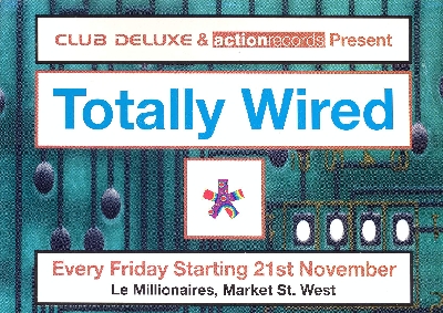 Flyer promoting an event called 'Totally Wired', every Friday at Le Millionaires, Market St. West, Preston. Starting 21st November c2000s (exact year unknown). An event by Club Deluxe and Action Records.