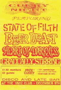 PDF (Flyer promoting performances from State of Filth, Beer Beast, Heart of Darkness, and Gradually Stirring at the 1in12 Club, 1995)