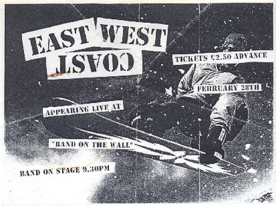 Flyer promoting a performance by East West Coast at Band On The Wall, Manchester, on 28th February c1990s (exact year unknown).