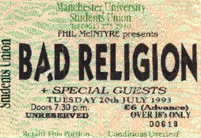 PDF (Ticket for Bad Religion at Manchester University Students Union, 1993)
