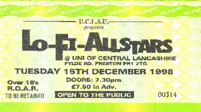 PDF (Ticket for a performance by Lo-Fi Allstars at UCLan, 1998)