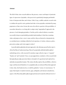 Issues and challenges in the application of Husserlian phenomenology to the Lived Experience of Hate Crime and Its Legal Aftermath.