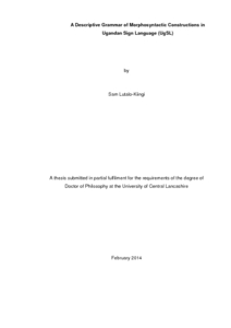 Lutalo Kiingi, Sam (2014) A Descriptive Grammar of Morphosyntactic Constructions in Ugandan Sign Language (UgSL). Doctoral thesis, University of Central Lancashire.