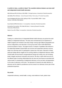 Conflict of roles, a conflict of ideas? The unsettled relations between care team staff and independent mental health advocates.