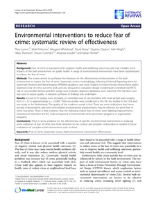 Fear of crime is associated with negative health and wellbeing outcomes, and may mediate some impacts of the built environment on public health. A range of environmental interventions have been hypothesized to reduce the fear of crime.