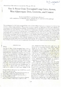 First investigated in 1869, the transepted long cairn of Parc le Breos Cwm was re-excavated in 1960-61 but without a report being published. This account presents a number of radiocarbon dates and a detailed reexamination of the human bone assemblages, and attempts to put the monument in local and regional context. Radiocarbon dates place the long cairn in the later part of the earlier Neolithic, and support a fairly long span of time over which its mortuary deposits were accumulated; they also show secondary re-use of the passage, and perhaps also the deliberate incorporation of very old animal bone from nearby caves. The analysis of the human bone assemblages indicates prior exposure of the remains found in the chambers, in contrast to those in the passage. Variation in musculoskeletal stress markers may indicate a mobile lifestyle for at least some of the male mortuary population. Other lifestyle indicators are noted, and isotopic evidence is presented for a terrestrial and mainly meat-oriented diet in the sampled group. The isolated context and hidden setting of the Parc le Breos Cwm long cairn and the apparently low density of south Welsh monuments are stressed.