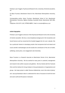 This article theorises museum engagement from a psychosocial perspective. With the aid of selected concepts from object relations theory, it explains how the museum visitor can establish a personal relation to museum objects, making use of them as an ‘aesthetic third’ to symbolise experience. Since such objects are at the same time cultural resources, interacting with them helps the individual to feel part of a shared culture. The article elaborates an example drawn from a research project that aimed to make museum collections available to people with physical and mental health problems. It draws on the work of the British psychoanalysts Donald Winnicott and Wilfred Bion to explain the salience of the concepts of object use, potential space, containment and reverie within a museum context. It also refers to the work of the contemporary psychoanalyst Christopher Bollas on how objects can become evocative for individuals both by virtue of their intrinsic qualities and by the way they are used to express personal idiom.
