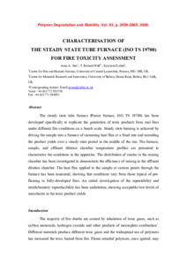 Characterisation of the steady state tube furnace (ISO TS 19700) for fire toxicity assessment.