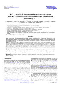 Debosscher, J., Aerts, C., Tkachenko, A., Pavlovski, K., Maceroni, C., Kurtz, Donald Wayne orcid iconORCID: 0000-0002-1015-3268, Beck, P. G., Bloemen, S., Degroote, P. et al (2013) KIC 11285625: A double-lined spectroscopic binary with aγDoradus pulsator discovered from Keplerspace photometry. Astronomy & Astrophysics, 556 . A56. ISSN 0004-6361