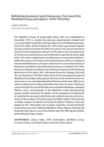 Rethinking Revisionist Social Democracy: The Case of the Manifesto Group and Labour's 1970s 'Third Way'.