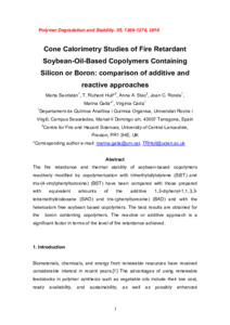 Cone calorimetry studies of fire retardant soybean-oil-based copolymers containing silicon or boron: Comparison of additive and reactive approaches.