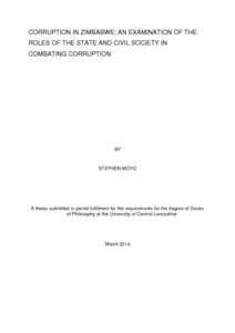 Moyo, Stephen (2014) Corruption in Zimbabwe: an examination of the roles of the state and civil society in combating corruption. Doctoral thesis, University of Central Lancashire.