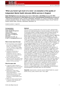 "When you haven't got much of a voice": An evaluation of the quality of Independent Mental Health Advocate (IMHA) Services in England.