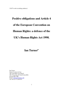 Positive obligations and Article 4 of the European Convention on Human Rights: a defence of the UK's Human Rights Act 1998.