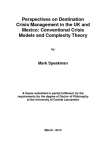 Speakman, Mark Kevin (2014) Perspectives on Destination Crisis Management in the UK and Mexico: Conventional Crisis Models and Complexity Theory. Doctoral thesis, University of Central Lancashire.