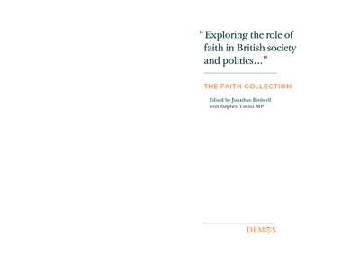 The Demos Inquiry into Faith, Community and Society set out to explore the role of faith in British society and politics. It investigated the relationship between religious belief, values and political motivation, and looked at the role that faith groups play in delivering public services. This collection brings together the research conducted for the inquiry, and includes a new essay by the inquiry’s chair, Stephen Timms MP.