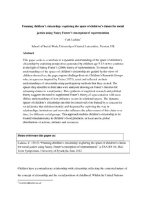 Framing children's citizenship: exploring the space of children's claims for social justice using Nancy Fraser's conception of representation.