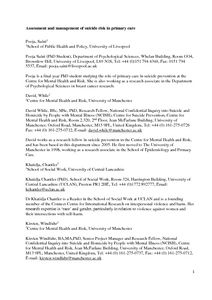 Saini, Pooja, While, David, Chantler, Khatidja ORCID: 0000-0001-9129-2560, Windfuhr, Kirsten and Kapur, Navneet