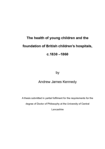 Kennedy, Andrew (2014) The health of young children and the foundation of British children’s hospitals, c.1830 –1860. Doctoral thesis, University of Central Lancashire.
