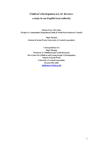 Children's Participation in LAC Reviews: a study in one Engilsh local authority