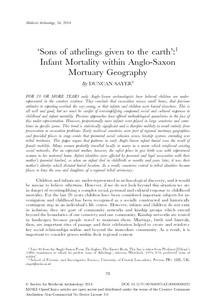 Duncan, Sayer orcid iconORCID: 0000-0002-2769-1281 (2014) ‘Sons of athelings given to the earth’: Infant Mortality within Anglo-Saxon Mortuary Geography. Medieval Archaeology, 58 (1). pp. 78-103. ISSN 0076-6097