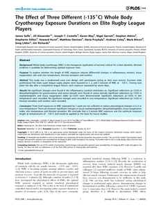 The Effect of Three Different (-135°C) Whole Body Cryotherapy Exposure Durations on Elite Rugby League Players.
