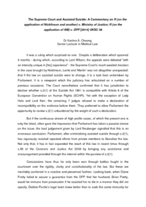 The Supreme Court and Assisted Suicide: A Commentary on R (on the application of Nicklinson and another) v. Ministry of Justice; R (on the application of AM) v. DPP [2014] UKSC 38