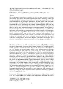 The Role of Aggravated Offences in Combating Hate Crime – 15 years after the CDA 1998 – Time for a change?