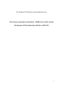 The German Community in Manchester, Middle-Class Culture and the Development of Mountaineering in Britain, c. 1850-1914.