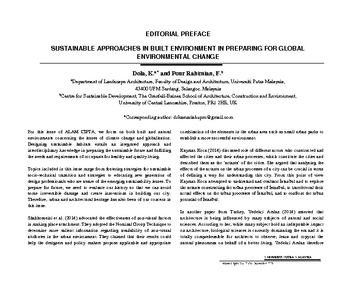 Sustainable Approaches in Built Environment in Preparing for Global Environmental Change.