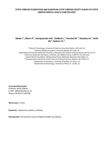Abbott, Janice orcid iconORCID: 0000-0001-9851-1236, Elborn, J.S., Georgiopoulos, A.M., Goldbeck, L., Marshall, B.C., Sabadosa, K.A., Smith, B.A. and Quittner, A.L. (2015) Cystic Fibrosis Foundation and European Cystic Fibrosis Society Survey of cystic fibrosis mental health care delivery. Journal of Cystic Fibrosis, 14 (4). pp. 533-539. ISSN 15691993