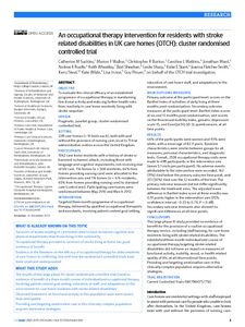 An occupational therapy intervention for residents with stroke related disabilities in UK care homes (OTCH): cluster randomised controlled trial.