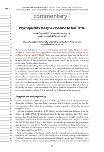 Cresswell, M and Spandler, Helen orcid iconORCID: 0000-0002-0970-5141 (2015) Psychopolitics Today: a response to Tad Tietze. Critical and Radical Social Work, 3 (1). pp. 119-125. ISSN 2049-8608