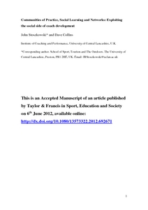 Large-scale coach education programmes have been developed in many countries, and are presented as playing a key role in the development of coaches and the promotion of high standards. Unfortunately, however, coaches often perceive that the current system of formal coach education fails to meet their needs. Perhaps as a result, the majority of their development is personally perceived to take place via informal and non-formal means. Appropriately, therefore, there has been an increasing focus within the coaching literature on the social aspects of learning, with social constructivist perspectives receiving particular attention. Reflecting this appropriate focus, this paper explores some of the potential opportunities and threats that social learning methods, such as Communities of Practice (CoP), present for coach developers. In tandem, we outline how all coaches are influenced by a set of pre-existing beliefs, attitudes and dispositions which are largely tempered by their experiences and interactions both with and within their social ‘milieu’. We argue that, at the very least, we need to begin to understand these constructs and, if we do, the potential for coach developers to manipulate and exploit them is obvious. In conclusion, it is highlighted that whilst offering inherent challenges, CoPs and other social learning methods provide coach developers with a great opportunity and legitimate tool to change coach behaviour and raise coaching standards. Perhaps paradoxically, we also propose that formal coach education may still have a vital role to play in this process.