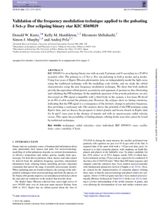 Kurtz, D. W. orcid iconORCID: 0000-0002-1015-3268, Hambleton, K. M., Shibahashi, H., Murphy, S. J. and Pr a, A. (2014) Validation of the frequency modulation technique applied to the pulsating Sct- Dor eclipsing binary star KIC 8569819. Monthly Notices of the Royal Astronomical Society, 446 (2). pp. 1223-1233. ISSN 0035-8711