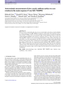 Saio, H., Kurtz, D. W. orcid iconORCID: 0000-0002-1015-3268, Takata, M., Shibahashi, H., Murphy, S. J., Sekii, T. and Bedding, T. R. (2015) Asteroseismic measurement of slow, nearly uniform surface-to-core rotation in the main-sequence F star KIC 9244992. Monthly Notices of the Royal Astronomical Society, 447 (4). pp. 3264-3277. ISSN 0035-8711