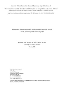 Attributions of blame in a hypothetical internet solicitation case: Roles of victim naivety, parental neglect and respondent gender.