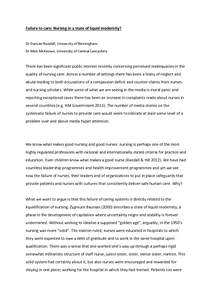 Randall, Duncan and McKeown, Mick orcid iconORCID: 0000-0003-0235-1923 (2014) Failure to care: Nursing in a state of liquid modernity? Journal of Clinical Nursing, 23 (5-6). pp. 766-767.