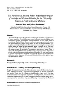 The Paradoxes of Recovery Policy: Exploring the Impact of Austerity and Responsibilisation for the Citizenship Claims of People with Drug Problems.