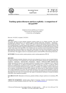 Jones, C and Carter, R (2013) Teaching spoken discourse markers explicitly: A comparison of III and PPP. International Journal of English Studies, 14 (1). pp. 37-54. ISSN ISSN: 15 78 - 7044