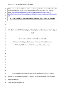Carson, H.J. orcid iconORCID: 0000-0002-3785-606X, Collins, D., orcid iconORCID: 0000-0002-7601-0454 and Richards, J. orcid iconORCID: 0000-0002-4004-3115 (2014) “To hit, or not to hit?” Examining the similarity between practice and real swings in golf. International Journal of Golf Science, 3 (2). pp. 103-118. ISSN 2168-7595