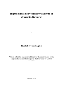 Toddington, Rachel Samantha (2015) Impoliteness as a vehicle for humour in dramatic discourse. Doctoral thesis, University of Central Lancashire.