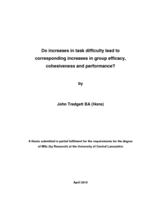 Tredgett, John (2015) Do increases in task difficulty lead to corresponding increases in group efficacy, cohesiveness and performance? Masters thesis, University of Central Lancashire.