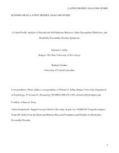 A Latent Profile Analysis of Suicidal and Self-Injurious Behavior, Other Dysregulated Behaviors, and Borderline Personality Disorder Symptoms.