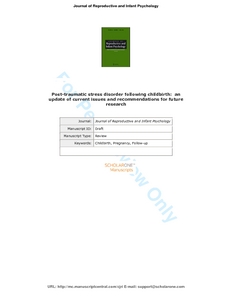 This paper aimed to report the current status of research in the field of post-traumatic stress disorder following childbirth (PTSD FC), and to update the findings of an earlier 2008 paper.