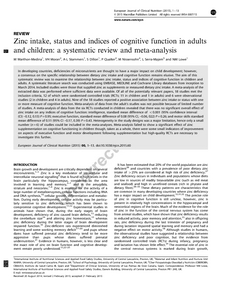 Zinc intake, status and indices of cognitive function in adults and children: a systematic review and meta-analysis.