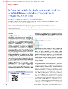 Date, Ravindra S., Jessica Mok, KamWa, Goh, YanLi and Howell, Laura (2015) Is C-reactive protein the single most useful predictor of difficult laparoscopic cholecystectomy or its conversion? A pilot study. Journal of Minimal Access Surgery . ISSN 0972-9941